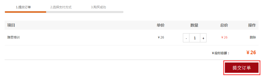 2, 提交订单:抢购后,按照页面提示选择购买数量及类型,点击"提交订单"。