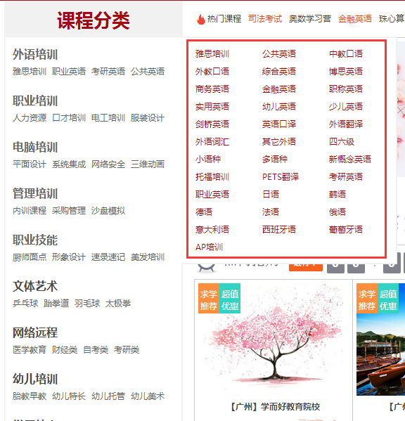 2, 选择首页左侧的商品品类,或首页上方的区域、课程分类,即可按照您想购买的类别来查找相关团购。